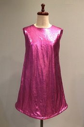 メタリックのシンプルラインのワンピースの裾にソフトなチューブを使い、立体的にしました。