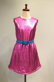 プラスチックバックルのベルトでオールドバービーのファッションのようにしても、ベルトなしで近未来的な雰囲気にしてもいいですし、ジャケットのインナーとして、差し色として使っても、また、メタリックなアイシャドーなどとリンクさせたり、様々にお使いください。