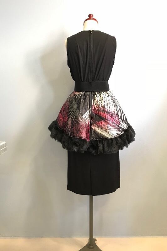 イタリア製の抽象画プリントのキルティングにフェイクファーを合わせました。