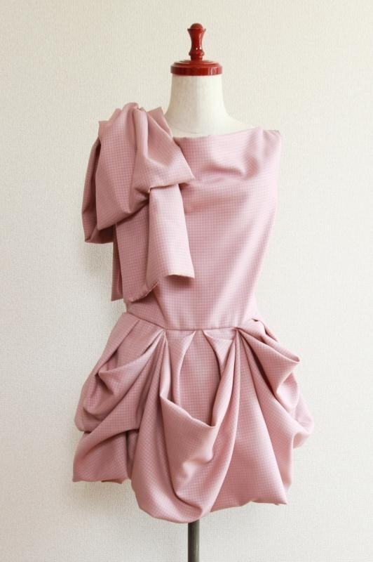 たっぷり布を使って、立体的に。主張しないチェック柄です。