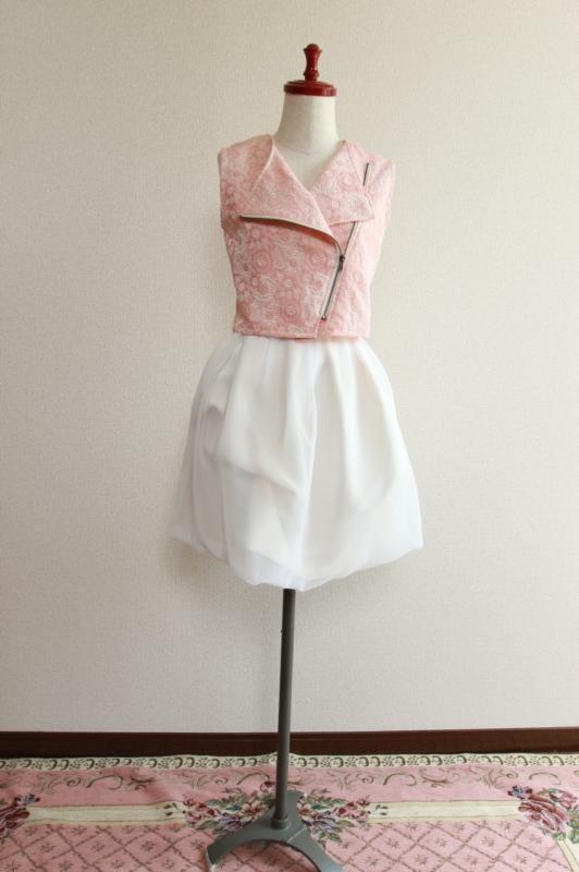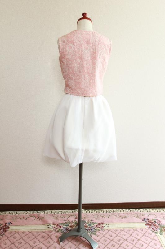 チュールの中にイレギュラーな形に膨らませたスカートを入れてコクーンのように。