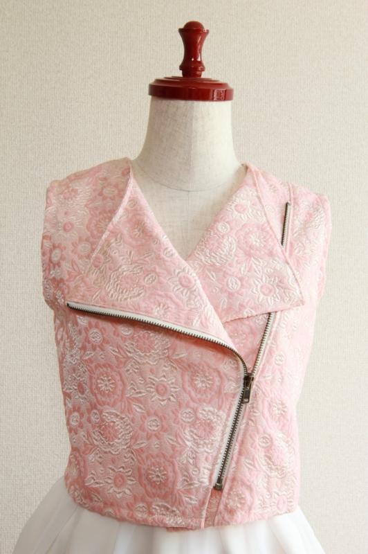 ライダースのような形を可愛い膨れ織の布でコンパクトに作りました。