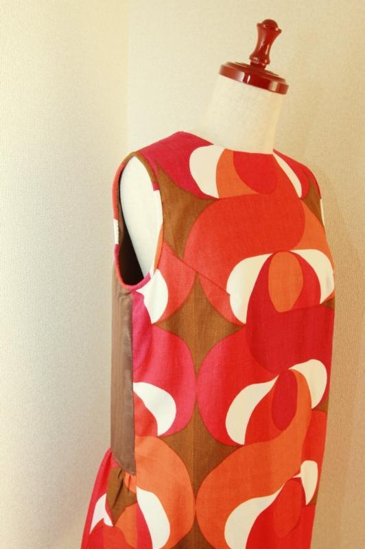 1970年代と思われるデッドストックの生地を使用。フロントは大胆な模様を生かしシンプルに、